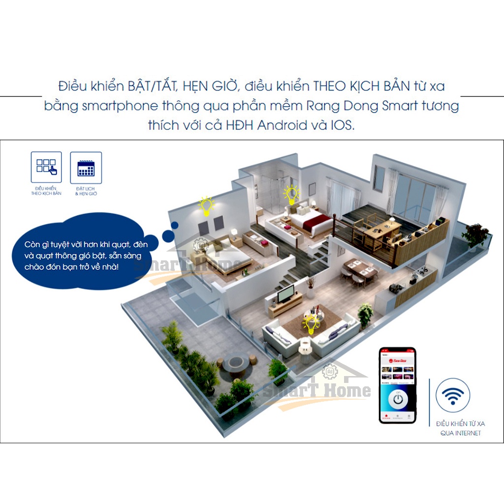 🔸 Điều khiển từ xa thông qua Internet bằng App RangDongSmart.