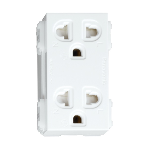 Ổ cắm đôi 3 chấu Panasonic có màn che và dây nối đất, 250VAC - 16AGồm 2 loại cắm nhanh và bắt vít