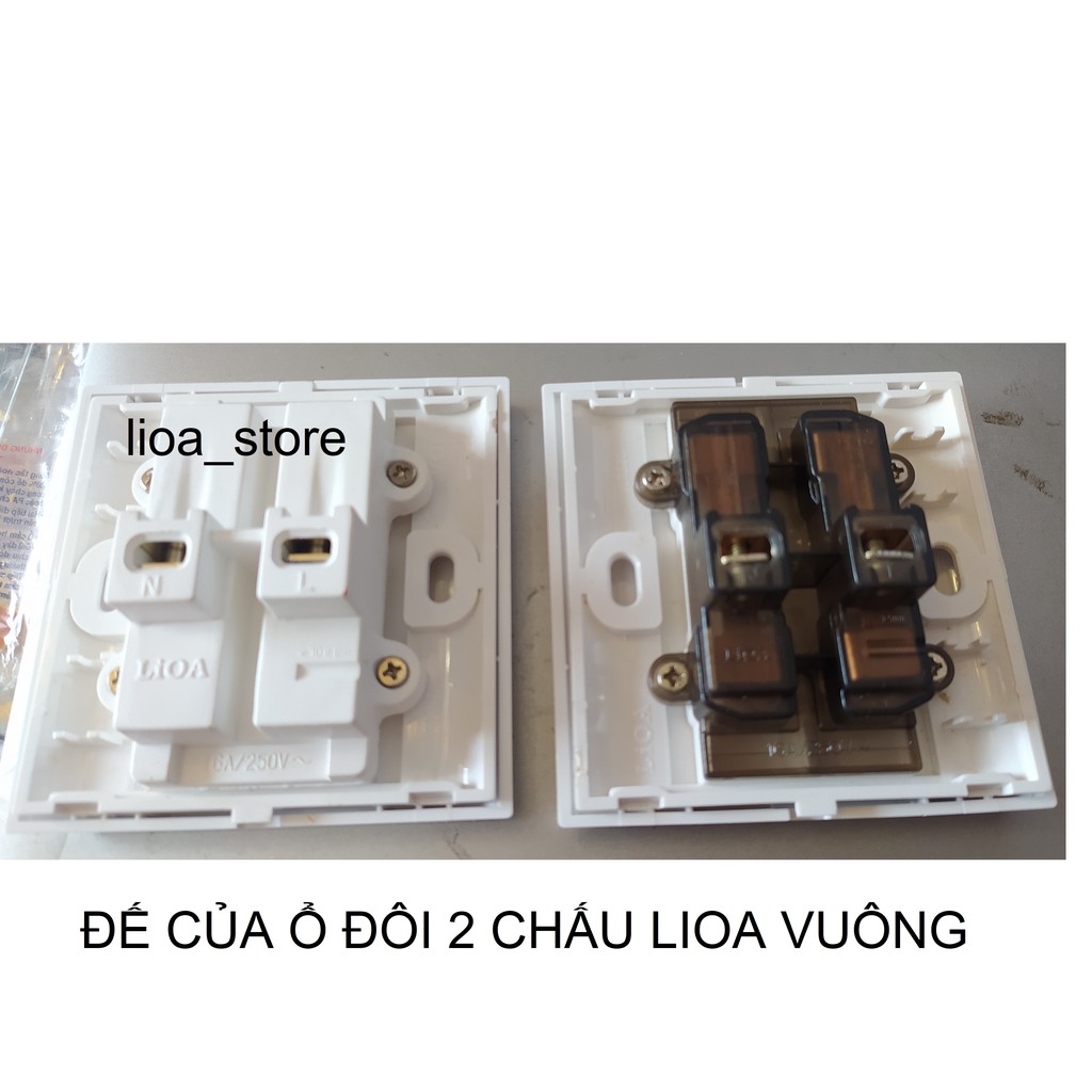 - Ổ CĂM( ĐƠN,ĐÔI) 2 CHẤU VUÔNG LiOA được hình thành bởi 3 phần ( viền, mặt và đế ). được gắn bởi các chốt, khớp nhựa và vít rất chắc chán và an toàn.Viền, mặt và đế đều màu trắng có đập chữ nổi ( LiOA) , bên trong ghi mã sản phẩm. Mặt ngoài dập chữ nổi và ghi thương hiệu trên sản phẩm , để tránh hàng nhái, hàng giả.