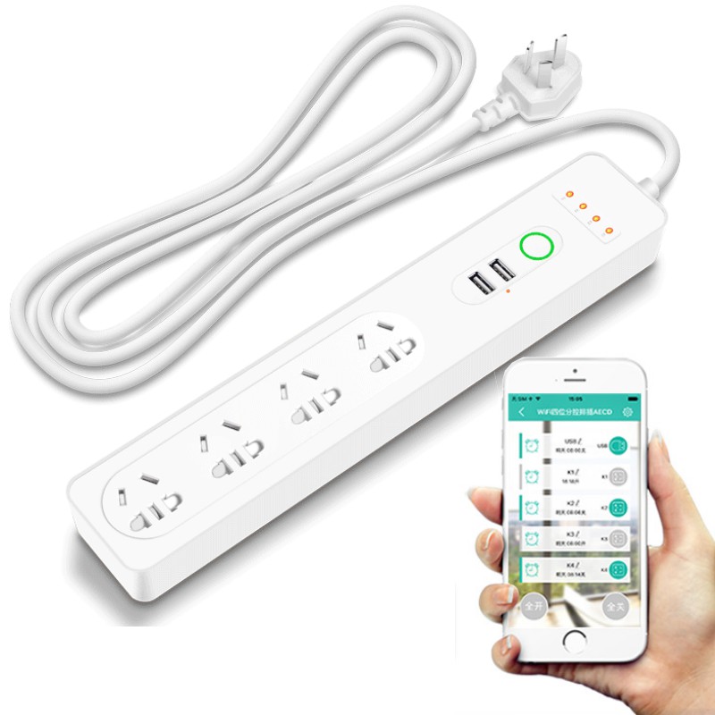 Ổ cắm nối dài thông minh Tuya Smart - Hẹn giờ bật tắt từng ổ thông qua App, 4 lỗ cắm và 2 cổng USB
