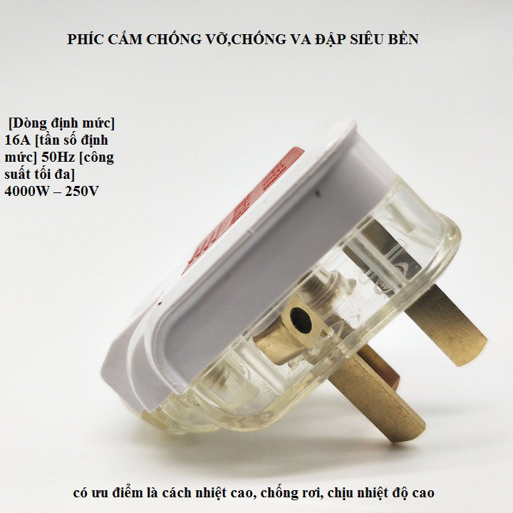 [Dòng định mức] 16A [tần số định mức] 50Hz [công suất tối đa] 4000W – 250V