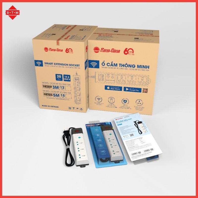 Giới thiệu Ổ Cắm Thông Minh 10A - Ổ Cắm Wifi Rạng Đông 2500W - Chức Năng Hẹn Giờ, Điều Khiển Từ Xa, Dây dài 3m-5m - Bảo Hành 2 Năm