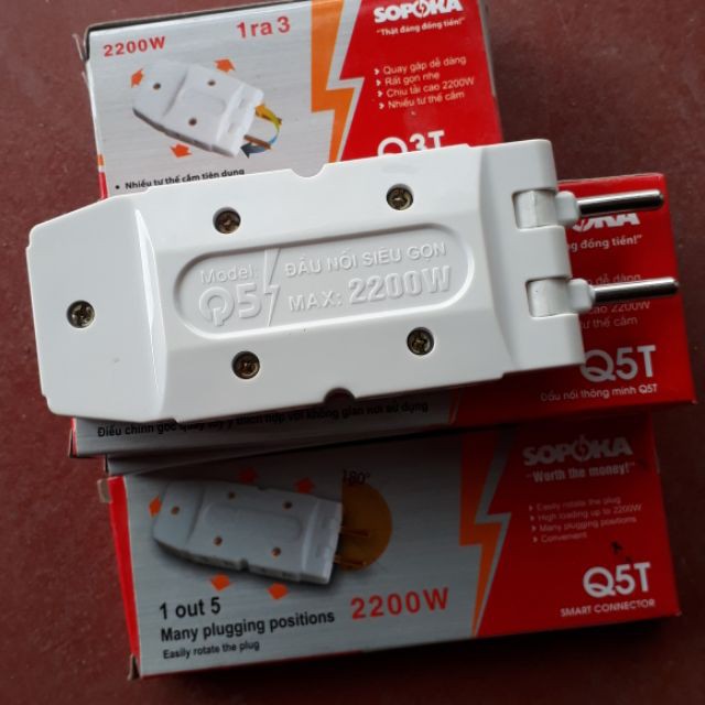 Ổ chia điện, đầu nối thông minh SOPOKA Q3T-Q5T chia 5 siêu gọn, siêu tiết kiệm:-Công suất: 2200W