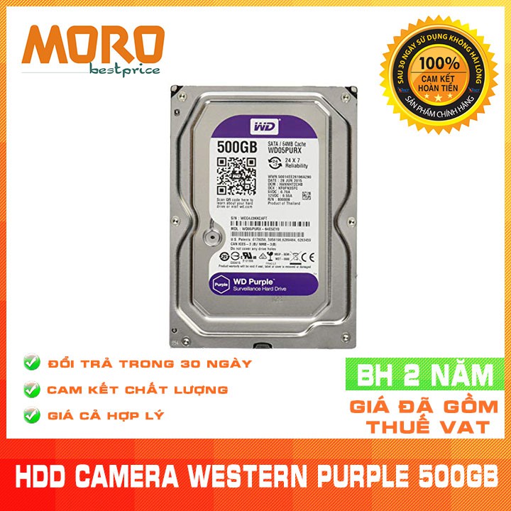 Máy tính & Laptop > Thiết Bị Lưu Trữ > Ổ Cứng Di Động || [Mã 253ELSALE hoàn 7% đơn 300K] Ổ cứng Camera HDD WD Purple 500GB - Bảo hành chính hãng 24 tháng 1 đổi 1Còn hàng