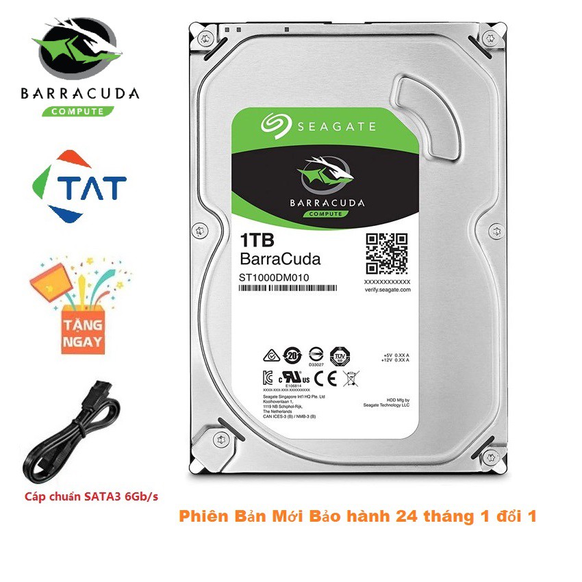 Ổ Cứng HDD Seagate Barracuda 1TB 3.5 inch 7200RPM SATA3 6Gb/s - Mới Bảo hành 24 tháng 1 đổi 1