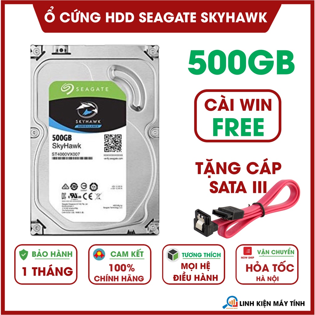 Máy tính & Laptop > Thiết Bị Lưu Trữ > Ổ Cứng Di Động || [Mã 253ELSALE hoàn 7% đơn 300K] Ổ cứng HDD Seagate Skyhawk 500GB - Mới 99% - Tặng cáp sata 3 - Bảo hành 1 thángCòn hàng