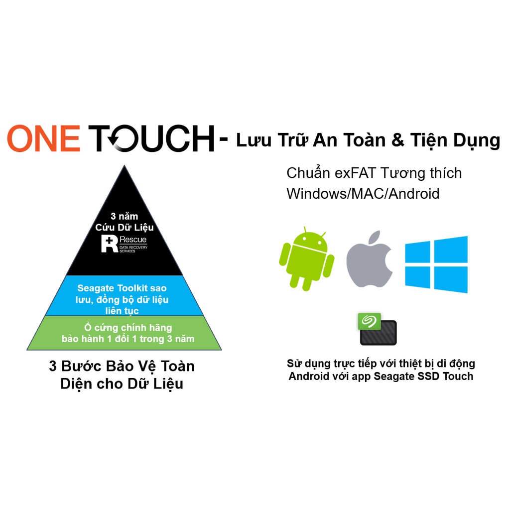 Ổ Cứng Di Động SSD Seagate One Touch được bảo hành 3 năm, 1 đổi 1 trong vòng 10 phút, tại hệ thống Trung tâm bảo hành SeaCare Center: