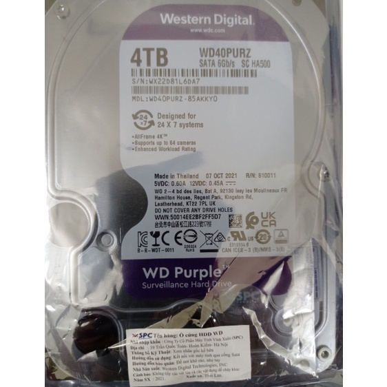 Giới thiệu Ổ cứng WD Purple 4TB WD40PURZ - Lắp máy tính - đầu ghi Camera - Hàng chuẩn
