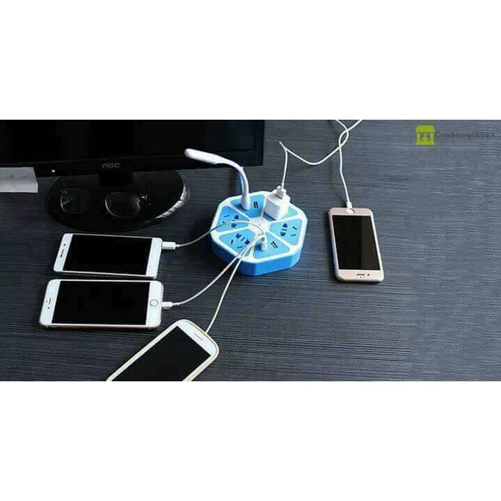 Ổ cắm thông minh với 4 lỗ cắm 3 chân và 4 lỗ 2 chân cùng 4 khe cắm USB giúp người dùng sạc pin smartphone mà không cần tới củ sạc.- Với cổng USB lên đến 1 Ampe giúp bạn có thể tăng tốc sạc pin siêu nhanh cho tất cả các phụ kiện yêu thích của bạn như smarphone, máy ảnh, máy tính bảng ...