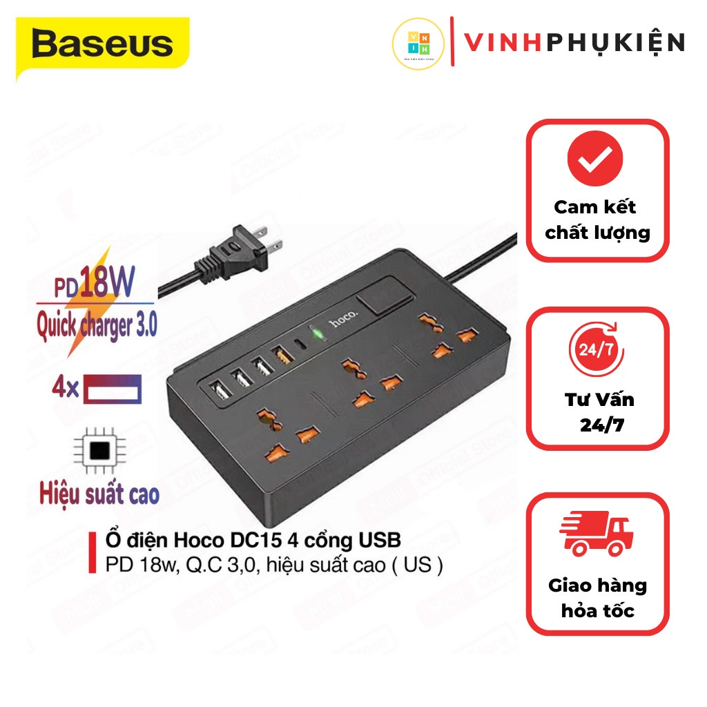 Thương hiệu: Hoco | Xem thêm các sản phẩm Ổ cắm điện của HocoMô tả ngắn