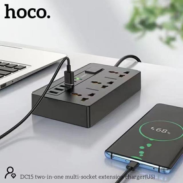 Ổ cắm Hoco DC15 2 in 1 Multi-socket ( 4 cổng USB+ Type-C ) hỗ trợ sạc 30W, Quick charger 3.0, PD 18W, dây dài 150cmThương hiệu : HocoModel : DC15Cổng ra : 4 USB + 1 cổng Type-C + 3 lỗ cắm điện thông dụng