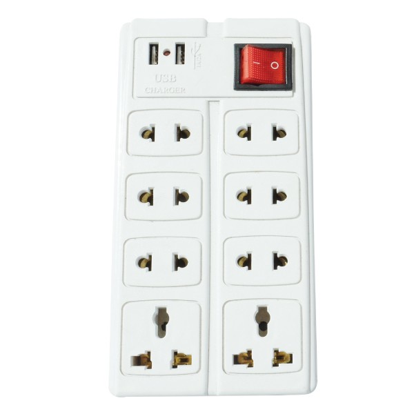 Thiết Bị Điện Gia Dụng > Mạch điện & Phụ tùng > Ổ cắm điện & Dây nối || Ổ điện P8 2U gồm 8 ổ cắm và 2 cổng cắm usb công suất 2500wCòn hàng