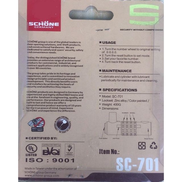 Nhà cửa & Đời sống > Bảo hộ gia đình > Khóa, ổ khóa || Ổ khóa số SCHONE GERMANYCòn hàng
