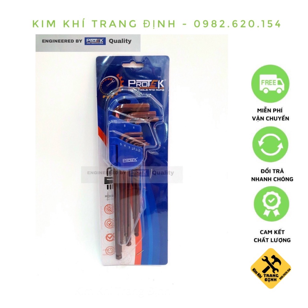 Giới thiệu Bộ Lục Giác Thép Nâu Đầu Bi Protek 9 Cây Chữ L 1.5-10mm