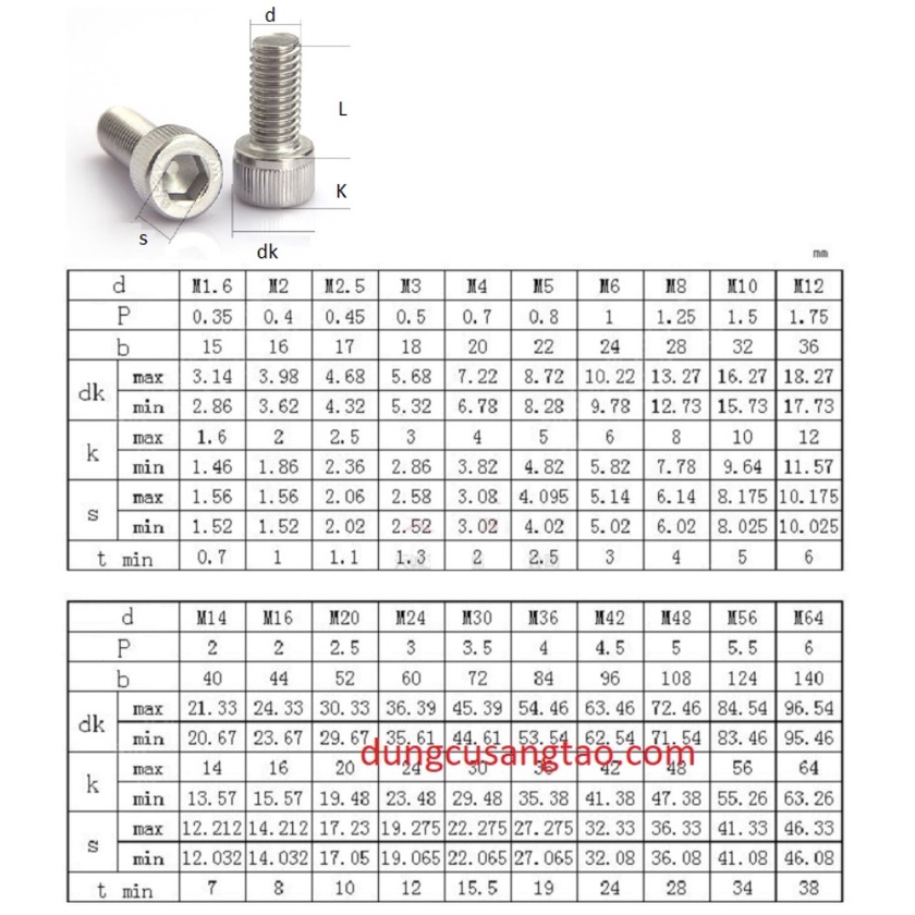 Ốc 10ly, 8ly đầu trụ khóa lục giác