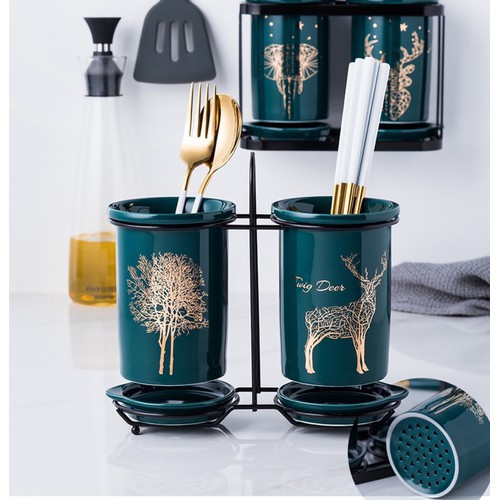Nhà cửa & Đời sống > Bộ đồ bàn ăn > Bộ dao kéo || Ống cắm đũa đôi sứ xanh cao cấp-Còn hàng