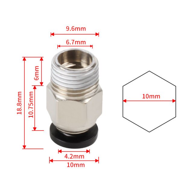 Các ống nối teflon với cụm đầu in (e3d v6, cr8,...) PC4-01, nối với cụm đùn nhựa MK8 (mk8)