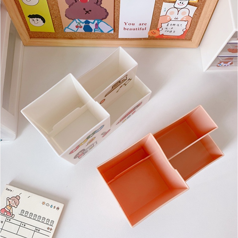 với nhiều 4 ngăn chứa kích thước to nhỏ cao thấp sẽ giúp cho việc cất giữ mỹ phẩm gọn gàng, đẹp mắt, thuận tiện khi sử dụng. Hơn nữa khi dùng để bút thước mình cũng có thể phân rõ ràng các loại đồ dùng học tập sao cho dễ tìm nhất nè.