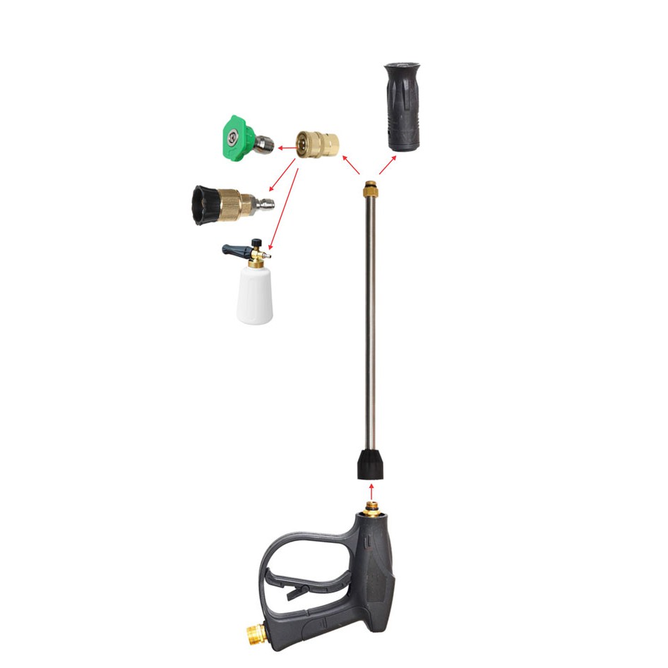 - Ống nối dài gồm có 3 loại chiều dài 37cm - 53cm - 72cm giúp bạn dễ dàng luôn sâu vào các vị trí khó với tới & tạo 1 khoảng cách nhất định giữa người sử dụng máy bơm xịt rửa xe với vật cần rửa để tránh bắn nước & đảm bảo an toàn hơn.