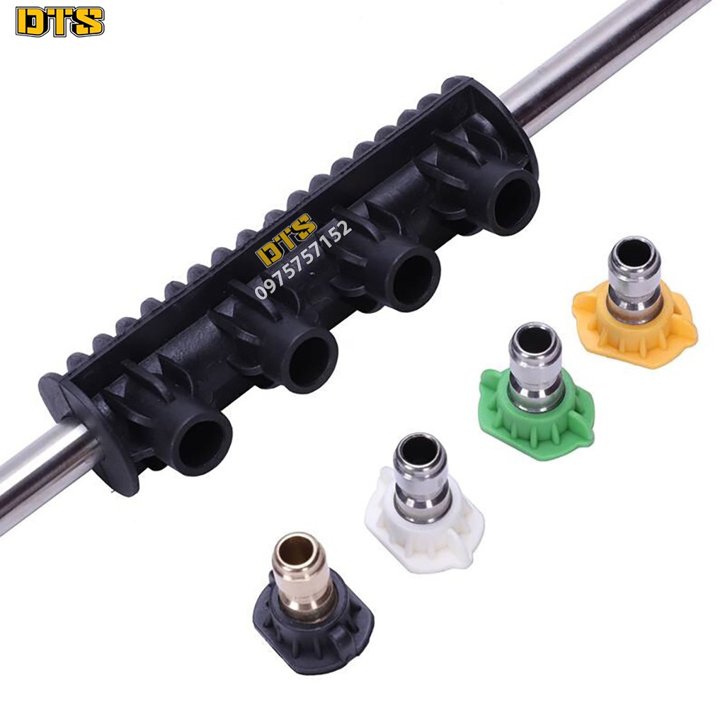 - 1 đầu béc 60 độ (màu đen) cho tia nước xòe rộng với áp lực thấp giúp bạn phủ đều xà phòng hay chất tẩy rửa lên xe.