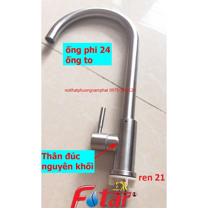 [ỐNG PHI 24] Vòi Rửa Chén Bát Lạnh Inox 304 quay 360 độ dùng cho 2 hộc chậu N5001 Fotar VÒI PHI 24
