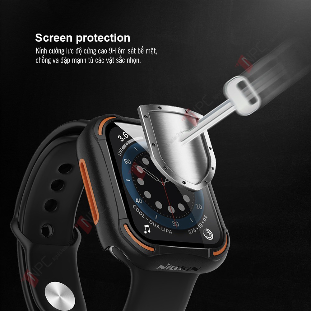 Ốp Apple Watch 6/SE/5/4 NILLKIN CrashBumper case kèm dán cường lực có độ cứng cao (9H) chống trầy xước, phân tán lực tác động bảo vệ tối ưu cho màn hình Apple Watch.