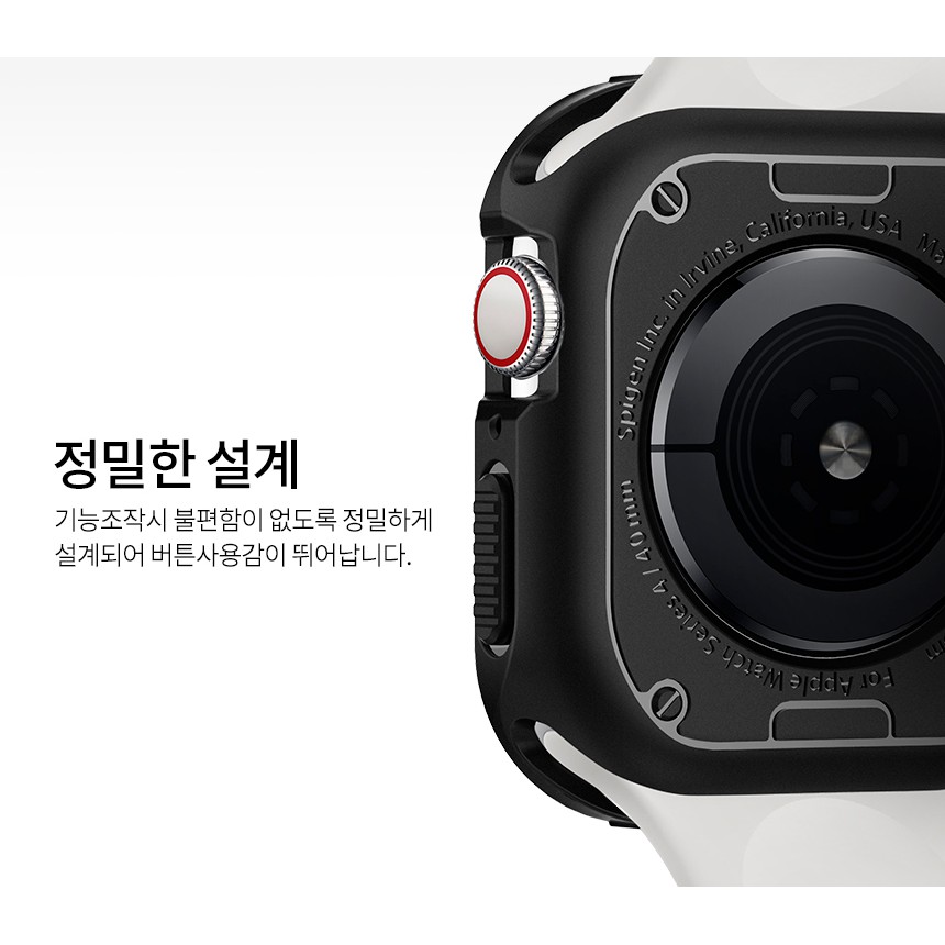 - Ốp Apple Watch Spigen mang lại cho bạn 1 vẻ đẹp mới về thiết kế: mạnh mẽ hơn, thể thao hơn...nếu bạn đã đã chán với kiểu bo cong mềm của Apple, bạn nên chuyển qua dùng thử ốp Rugged Armor.