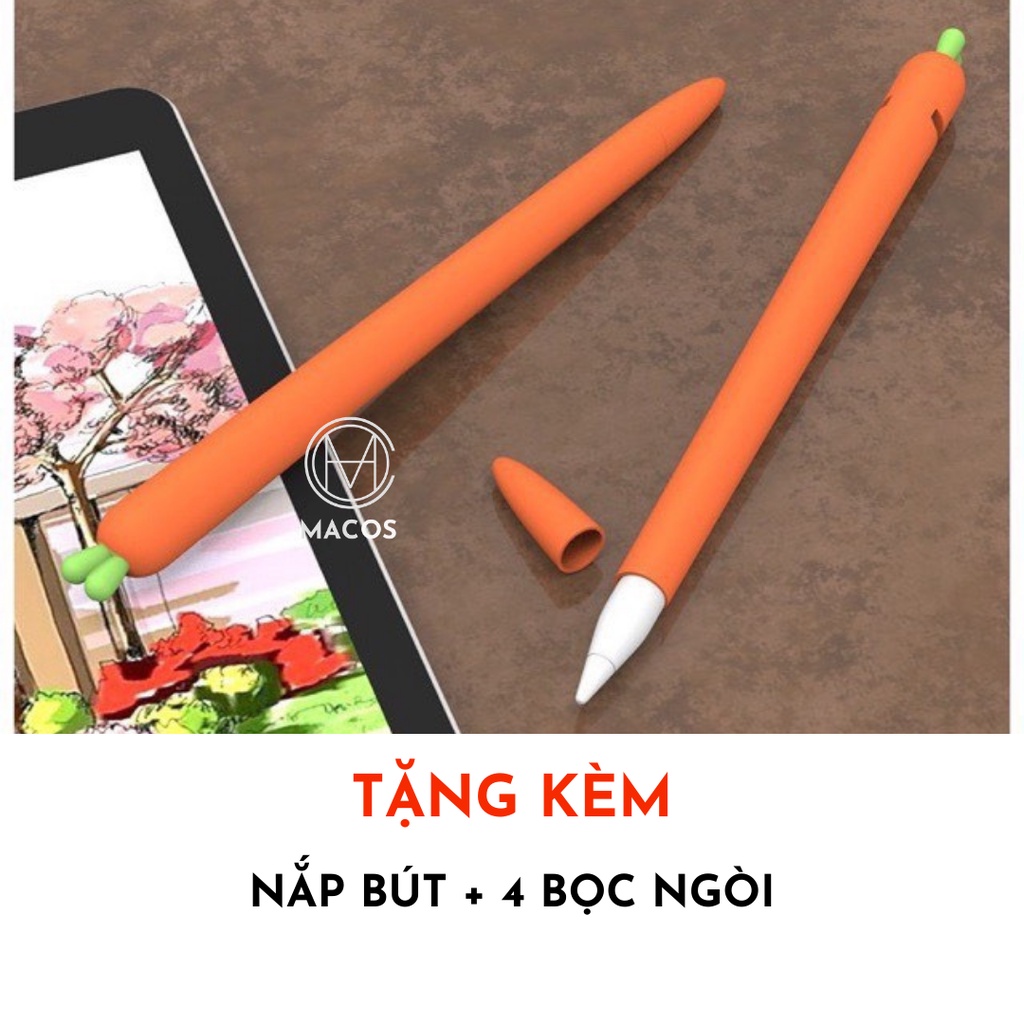 Ốp case cho Apple Pencil 2 , 1 bao silicon kiểu củ cà rốt tặng kèm nắp bút và 4 chiếc bọc ngòi (AP10)