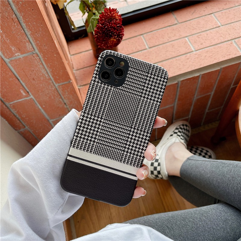 Điện Thoại & Phụ Kiện > Phụ kiện > Vỏ bao, Ốp lưng & Miếng dán > Vỏ bao, Ốp lưng & Miếng dán điện thoại || Ốp da iPhone cao cấp kẻ sọc họa tiết HOUNDSTOOTH sang chảnh Hàn Quốc.Tương thích 12 ProMax/12//11/XsMax/Xs/8plus/8/7Còn hàng