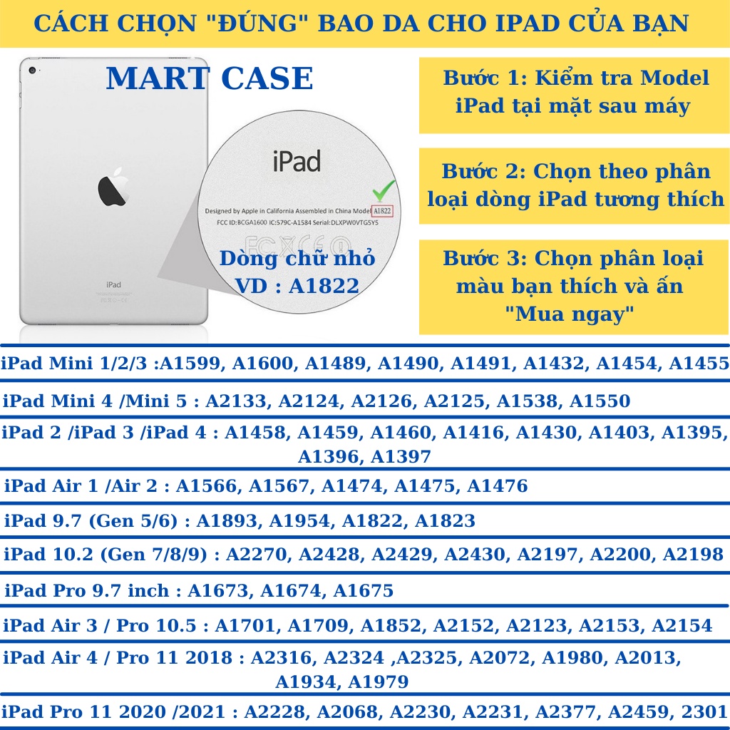 ⚡ Bạn đặt hàng chuẩn theo mã A sau máy là ok nhé.( ví dụ A1566 bạn đặt hàng chọn iPad Air 1/ Air 2 )