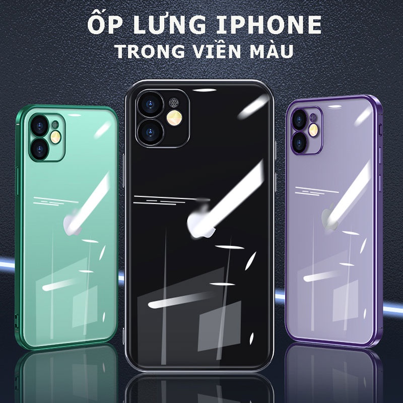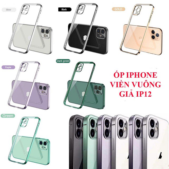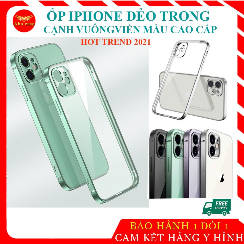 Ốp iphone - ôp Lưng Trong Dẻo Viền Vuông Mạ Màu dành cho Ip 7plus/8plus/X/Xs//Xs Max/11/11 Promax/ 12/ 12 Pro Max đẹp