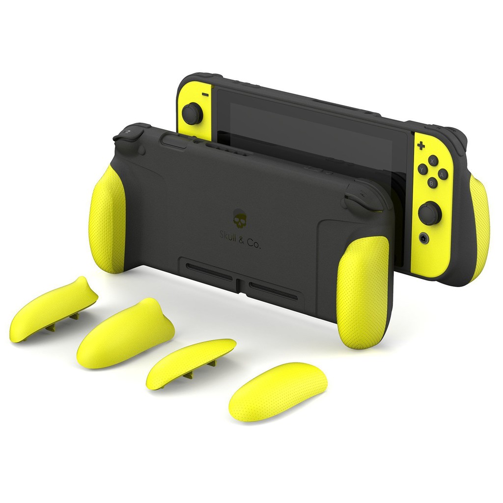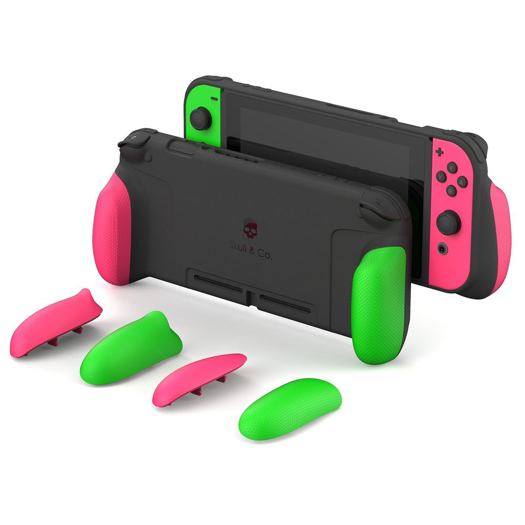 Sản phẩm chính hãng đến từ hãng Skull&Co thiết kế riêng cho máy Nintendo Switch, dùng chung được cho V1 và V2_GripCase : gồm ốp mặt lưng máy và 3 cặp tay nắm phù hợp với các kích cỡ to nhỏ tùy tay người sử dụng, bảo vệ toàn diện cho máy, chất liệu nhựa TPU mềm dễ dàng tháo lắp và vệ sinh, kích thước nhỏ gọn nên máy đã lắp GripCase có khả năng lên Dock như bình thường.