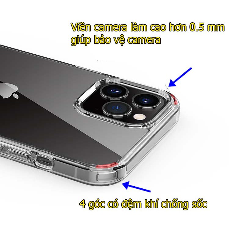 Ốp lưng iPhone 13 pro max/ 12/iP 11 trong suốt chống sốc đệm khí 4 góc