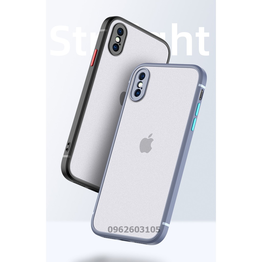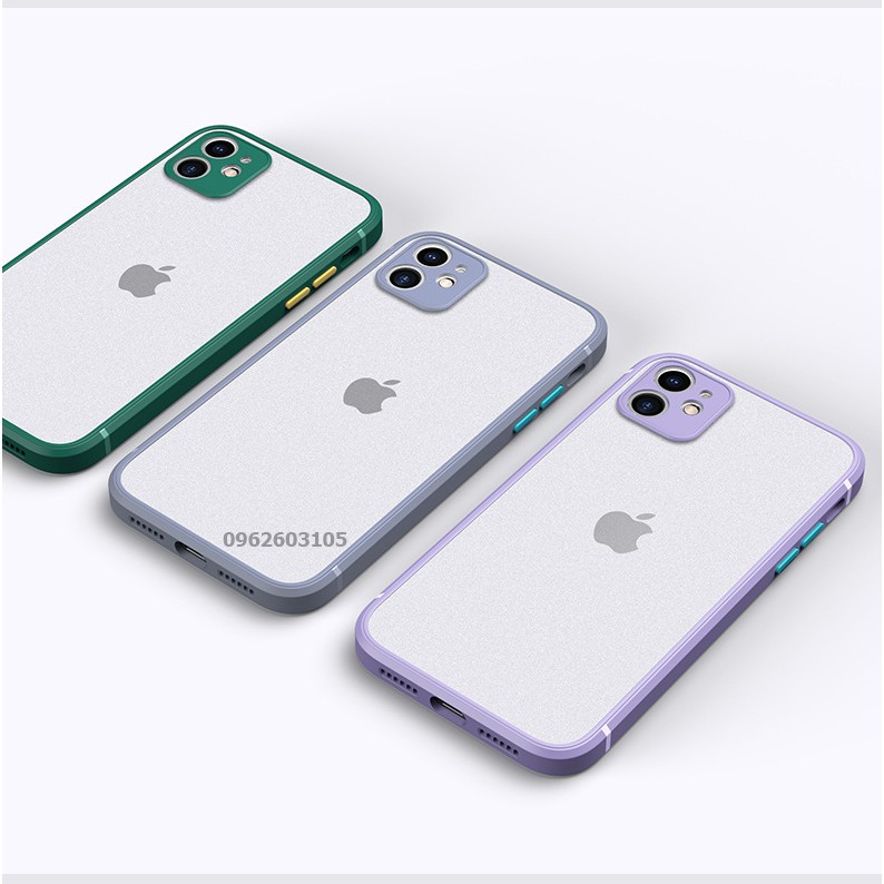 Ốp Lưng Iphone 7 Plus/ 8 Plus/Xs Max/XR/11 pro/11 Pro Max/12 promax/12 Mini Cạnh Vuông Lưng Nhám Viền Màu Chống Vân Tay