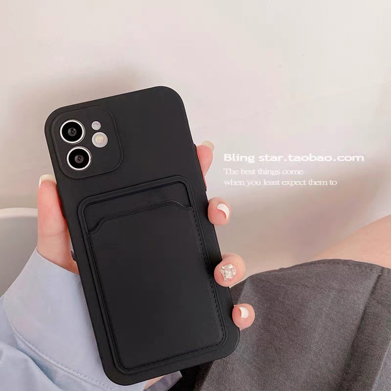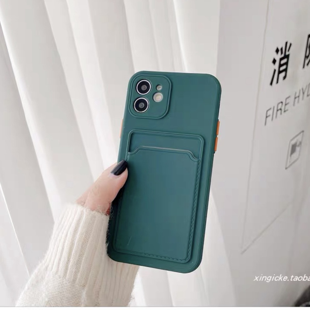 Đặc điểm: Ốp điện thoại silicon màu trơn có khe cắm thẻ thời trang