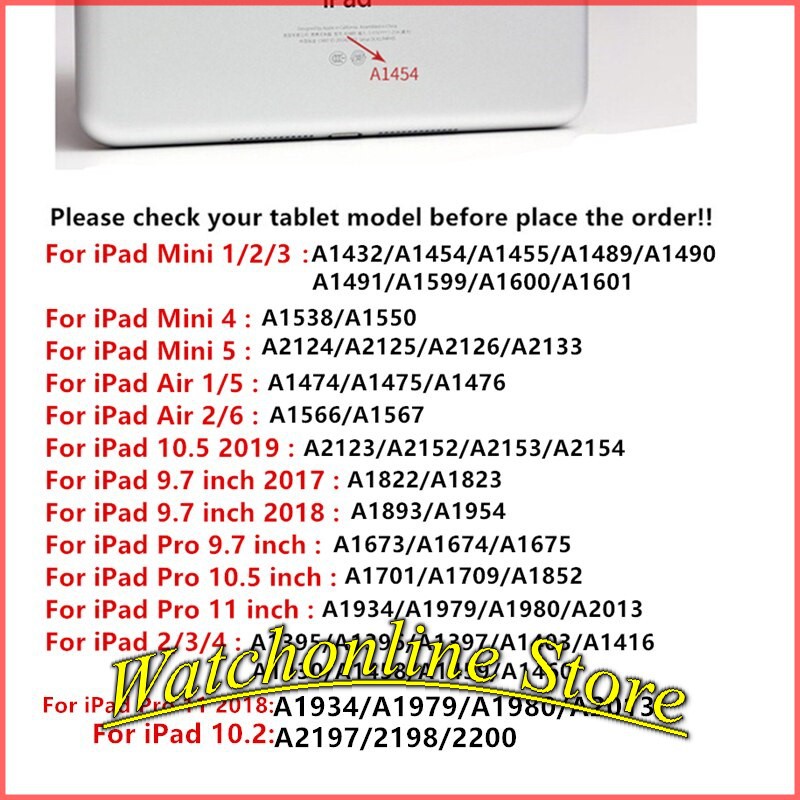*iPad mini 1/2/3 : A1432,A1454,A1455,A1489,A1601,A1490,A1491,A1599,A1600