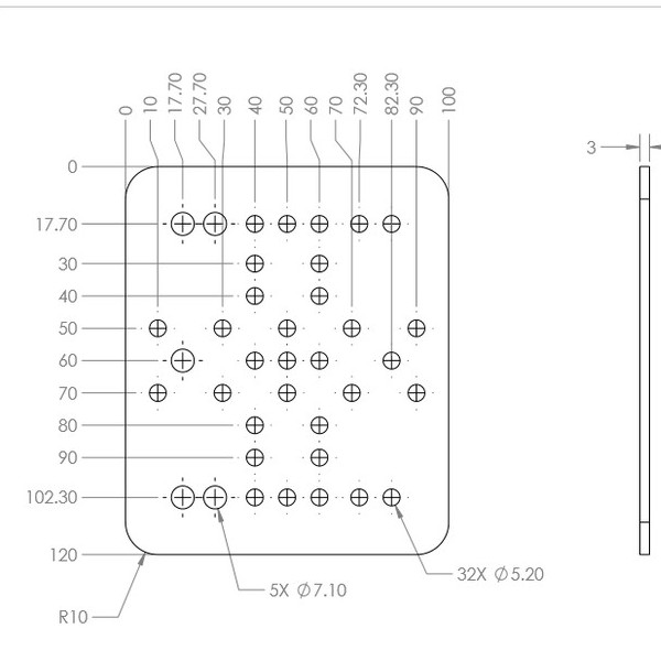 Openbuilds pad bắt bánh xe v-slot cho nhôm định hình 2040 4040 kích thước 100m x 120mm 47 lỗ bắt ốc tiện lợichất liệu nhôm 6063 – T6 Plate