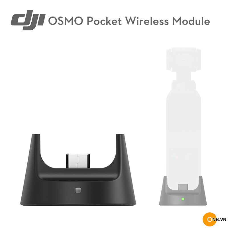Mô-đun không dây cung cấp kết nối Bluetooth và Wi-Fi giữa Osmo Pocket và thiết bị di động của bạn để hỗ trợ điều khiển từ xa liền mạch và giúp việc chụp linh hoạt hơn. Nó cũng đóng vai trò là cơ sở để đặt Osmo Pocket trên các bề mặt bằng phẳng. Bạn cũng có thể sạc Osmo Pocket qua cổng USB-C.