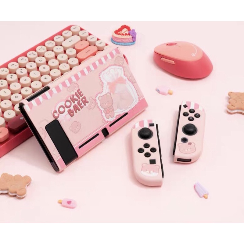 Bộ ốp lưng và case Joy-Con chủ đề Cookie Bear chất liệu TPU cao cấp hãng Geekshare cho máy Nintendo Switch v1,v2