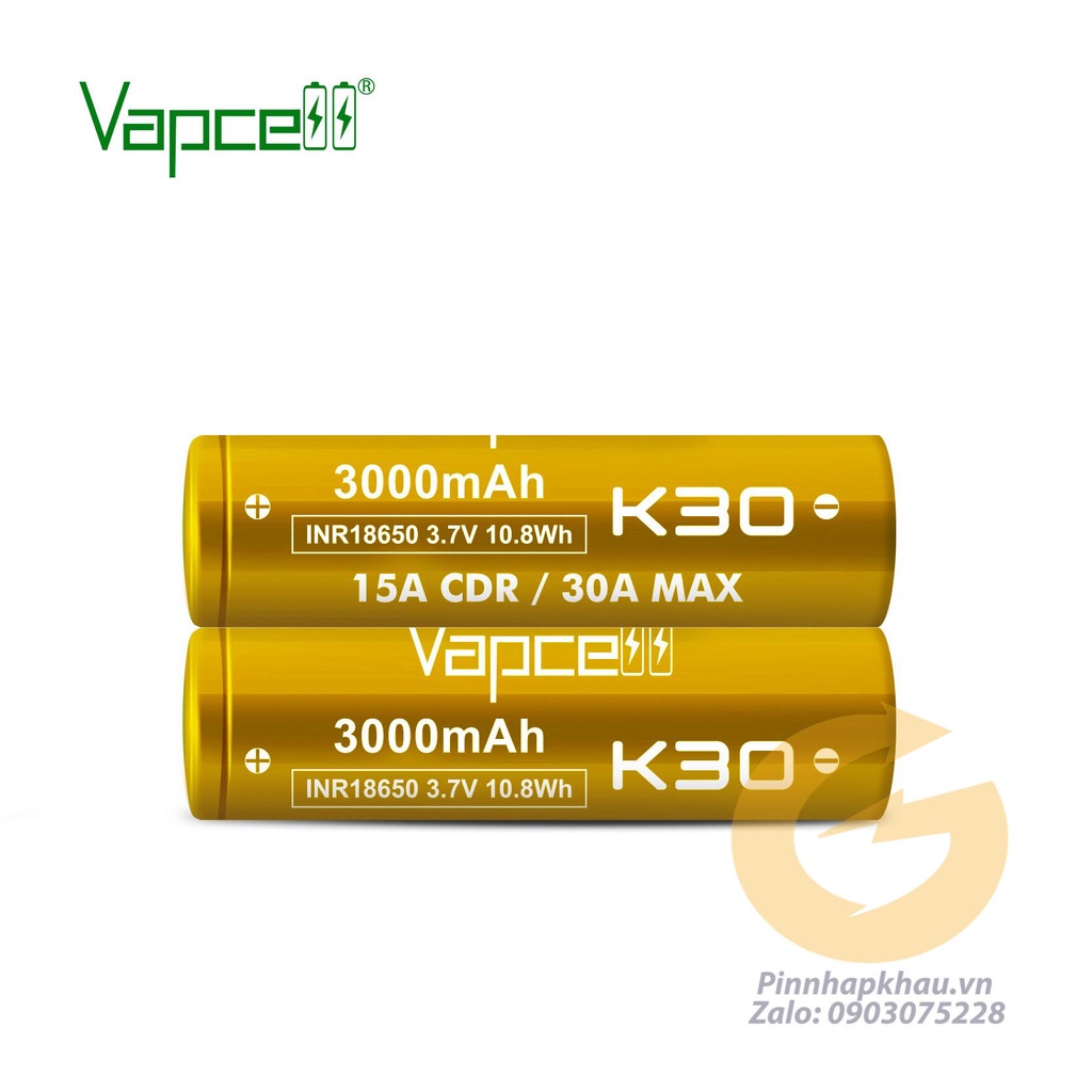 [P50] Pin sạc Lithium Li-ion 18650 Vapcell K30 3000mAh 30A