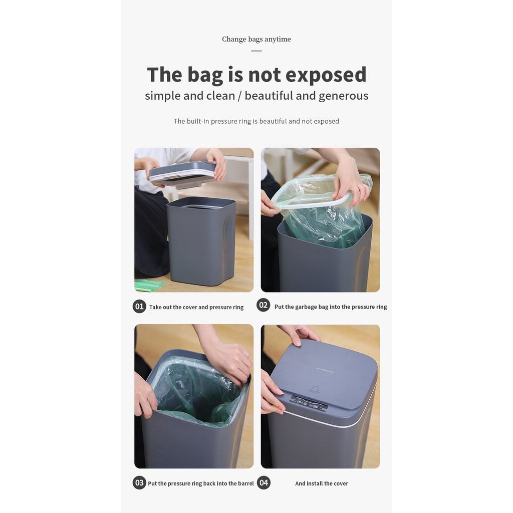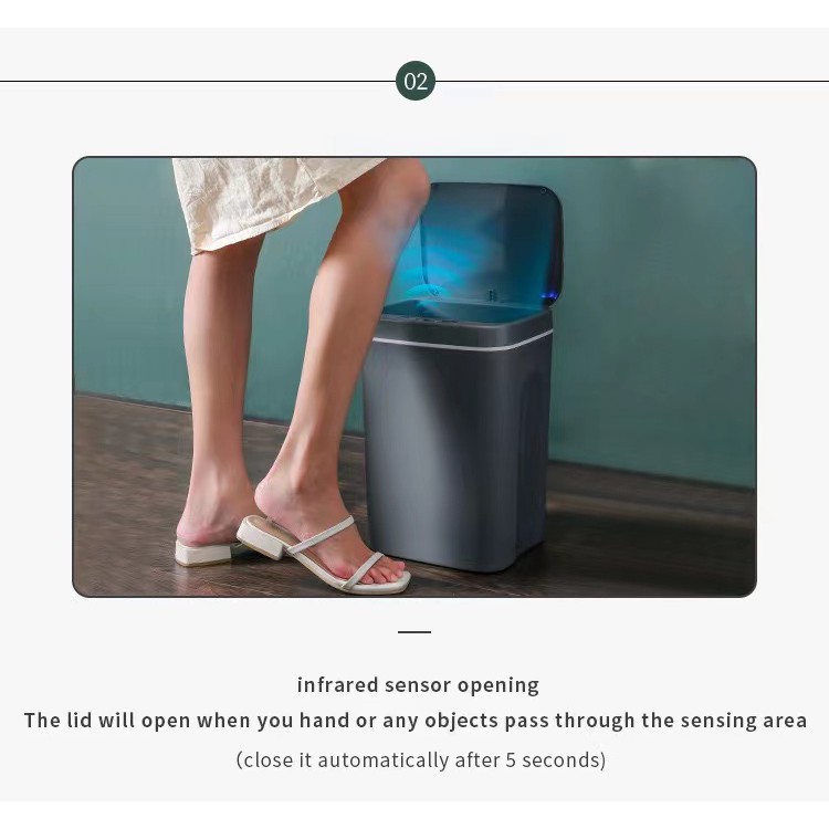 -Thiết kế cảm ứng, Sau khi bật công tắc máy sẽ tự cám biển khi khua tay hoặc gõ vào thân thùng rác, hạn chế các vi khuẩn có hại gây bệnh