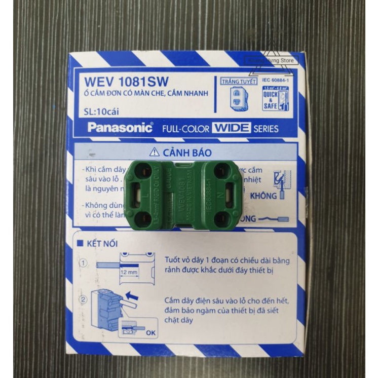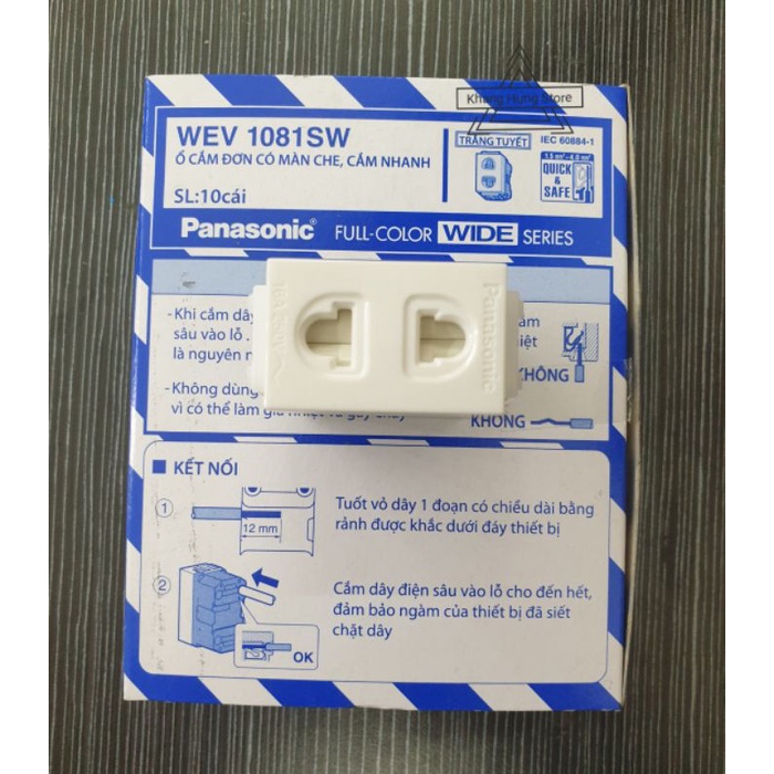 + Hạt Ổ Cắm Điện Âm Tường Đơn 2 Chấu WIDE PANASONIC WEV1081SW sử dụng với Mặt dùng cho thiết bị Panasonic chính hãng
