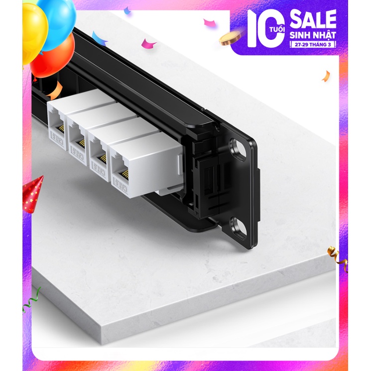 Thanh Patch Panel UTP Ethernet Cat5e và Cat6 24 cổng kim loại UGREEN NW154 80445Áp dụng cho tủ 19U