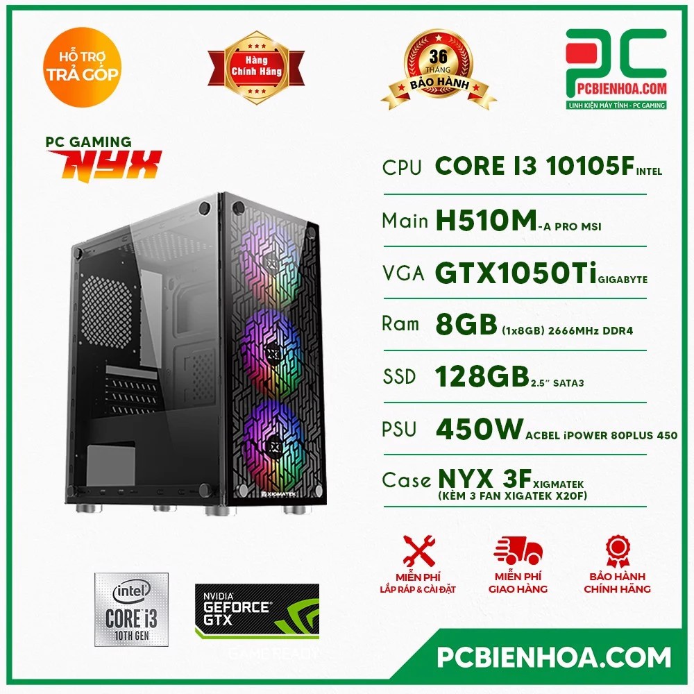 Giới thiệu PC GAMING NYX ( CORE I3 10105F / H510 / GTX1050TI / 8GB / 128GB )