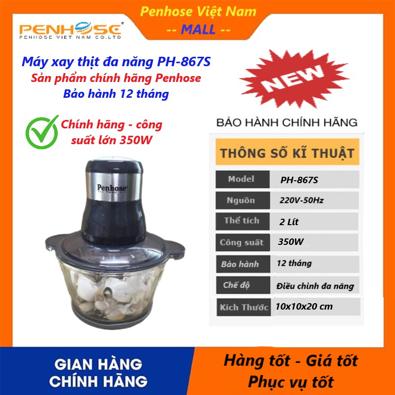 [PENHOSE] Máy Xay Thịt, máy bóc tỏi đa năng cao cấp PH-867S thế hệ mới chính hãng (bảo hành12 Tháng)1. Thông số kỹ thuật