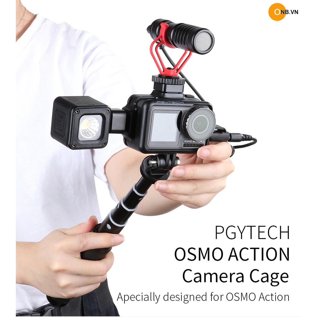 PGYTECH Cage DJI OSMO Action Camera - Khung bảo vệ cho Osmo Action cao cấp.Thiết kế khung abs, cứng cáp, chắc chắn tích hợp cold shoes gắn mic, đèn, ốc 1/4 bắt thêm phụ kiện khác