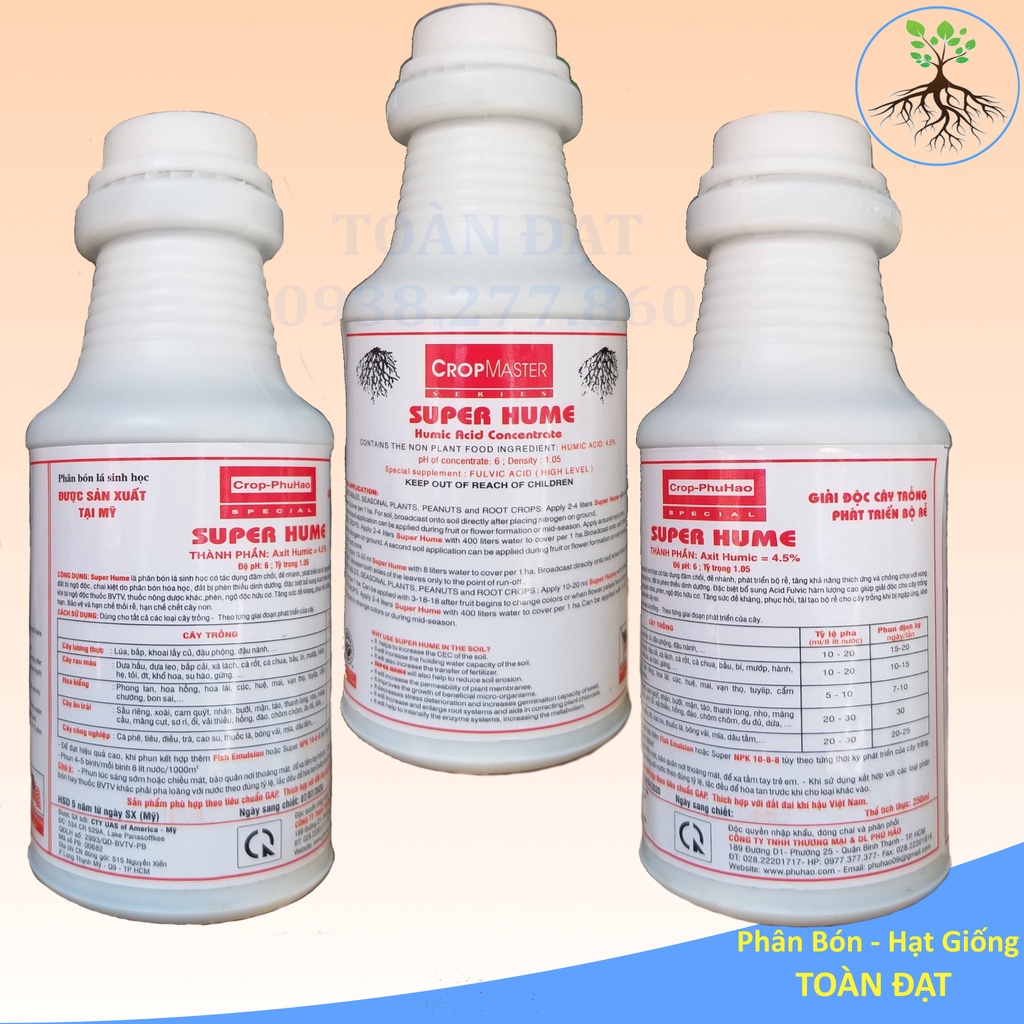 Giới thiệu Phân Bón Axit Humic Mỹ SUPER HUME (250ml), Acid Humic Sinh Học - ra rễ mạnh, tăng trưởng nhanh