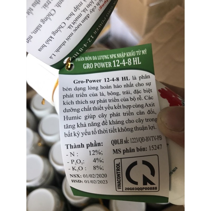 GRO POWER 12-4-8 - kích thích sinh trưởng của MỸThể tích; 240ml/ chai