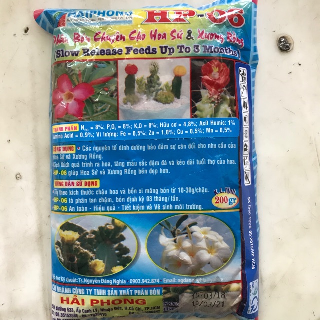 🌟Phân bón Hp - 06: Chuyên dành cho các loại Hoa sứ và xương rồng.✔️Các nguyên tố dinh dưỡng bảo đảm sự cân đối cho nhu cầu Hoa Sứ, Xương rồng