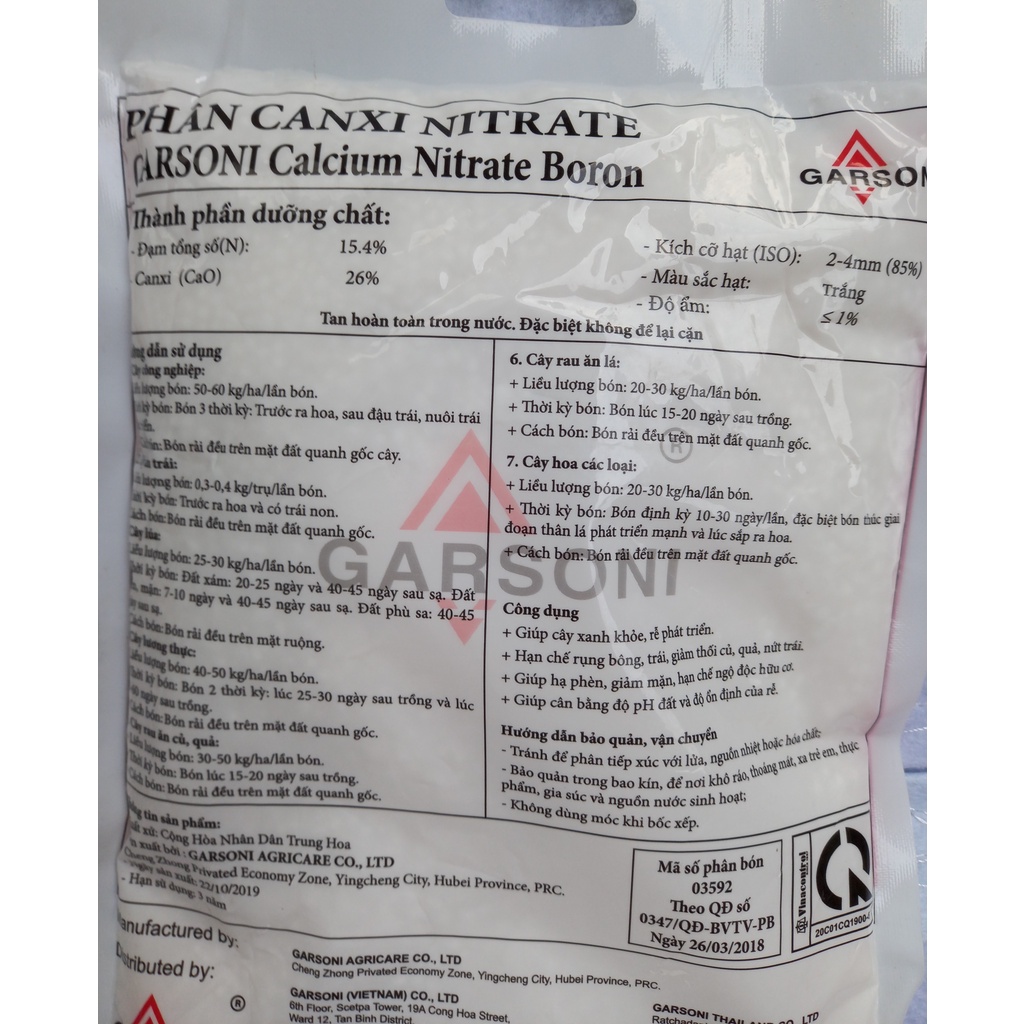 Phân bón Đạm canxi - Calcium Nitrate Boron túi 1kg, tan hoàn toàn trong nước*TAN HOÀN TOÀN TRONG NƯỚC. ĐẶC BIỆT KHÔNG ĐỂ LẠI CẶN. DÙNG ĐƯỢC CHO HỆ THỐNG NHỎ GIỌT